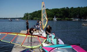 - Einweisung in Windsurf-Theorie und Verkehrsregeln auf dem Wasser